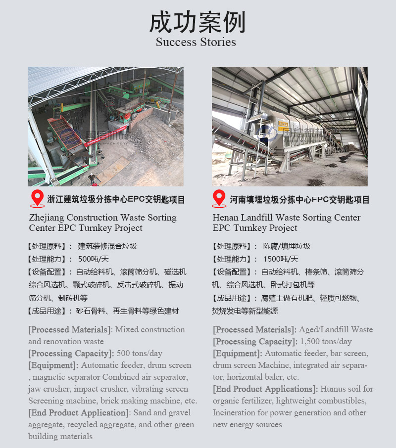 2.建筑垃圾分拣采用不同的分类方法,包括筛选方法,根据建筑垃圾的物理或化学性质(包括粒度).密度.重力.磁性.电性.弹性等),包括筛选,重力分选.磁选.光电分选是一种非常简单有效的人工分选等。