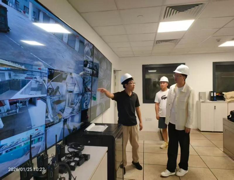 在JEGS的中央监控中心,国信集团团队在客户陪同下,通过全景监控系统详细了解了电厂的运行流程与技术需求。随后,考察团深入厂区,实地查看发电设备运行状况,并就垃圾分选、焚烧发电、绿色环保能源等技术方案与客户展开深入交流。